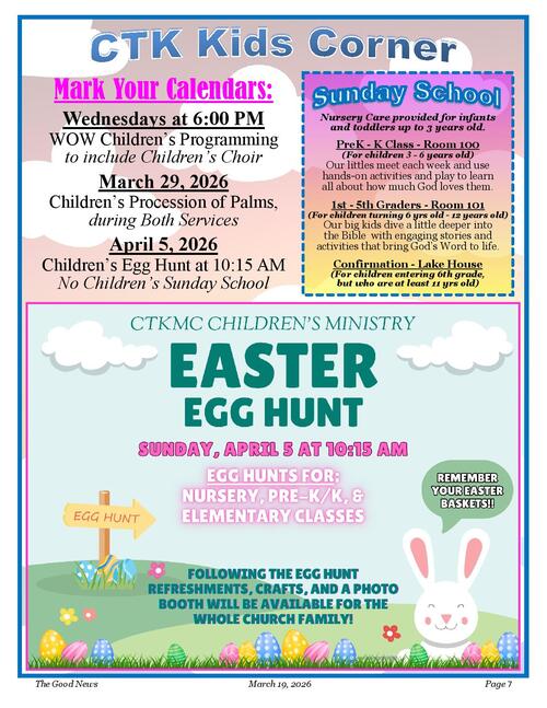 It's never too late to join, contact Ms. Kristen at choir@ctkmc.net for more information or contact the church office by calling 936-439-4676.